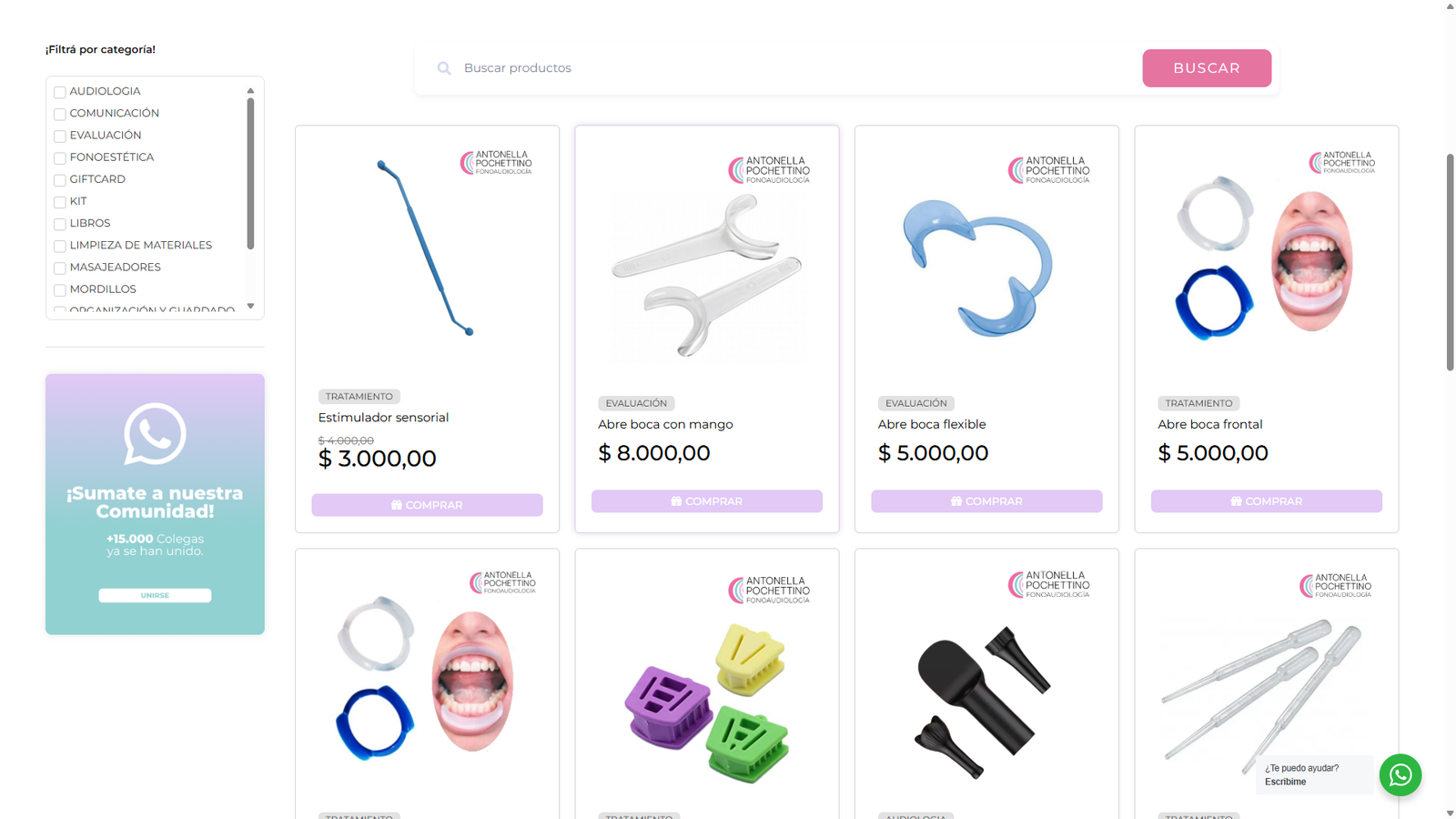 El primer desafío fue organizar un catálogo de productos muy específicos. No es un e-commerce tradicional; es una farmacia de herramientas para el desarrollo humano.